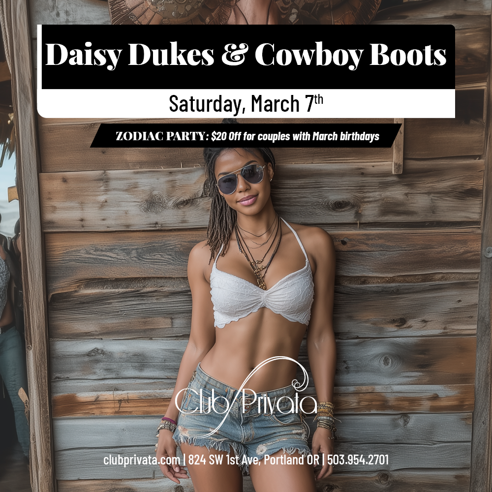 Yee-haw! Tonight we bring back this popular party and take things back a little to the wild wild west. Put on your sexiest hat, boots, chaps, or Daisy Dukes and come ride the night away!